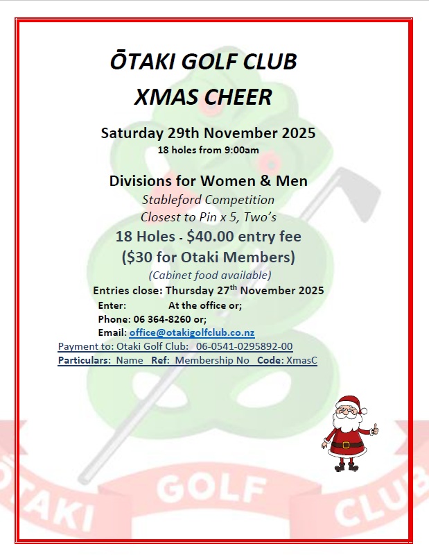 Payment to: Otaki Golf Club: 06-0541-0295892-00