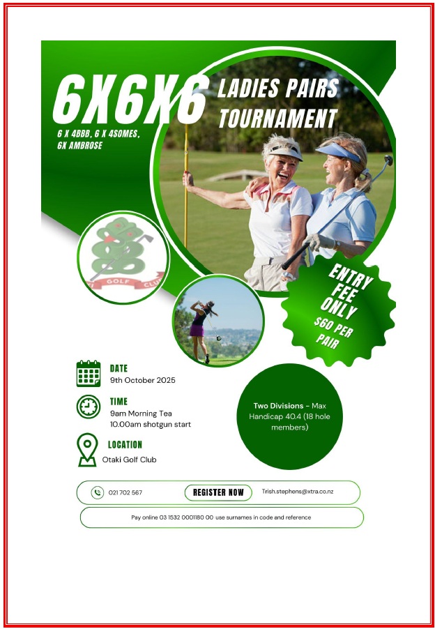 Women's Pairs tournament, 6x6x6 format for lots of fun!